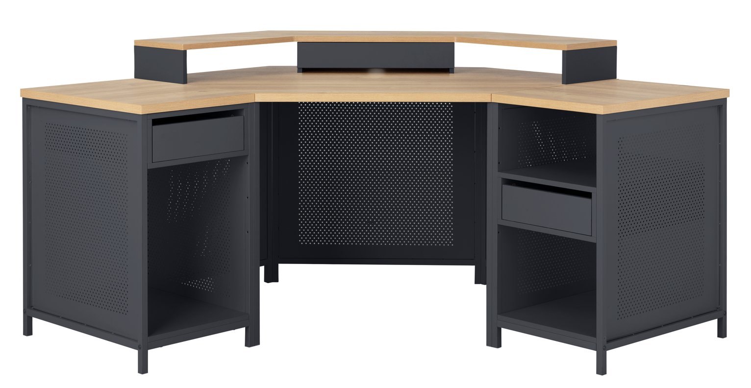 Argos home modular corner gaming desk oak effect grey.